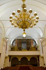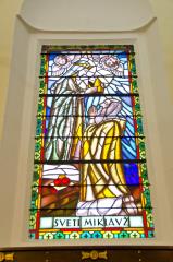 Today's building carries in its foundation the remains of its predecessor, a medieval church from the end of the 15th century. This is particularly noticeable in the presbytery, which has a characteristic floor plan with built-in gothic windows, and its remnant is also the gothic portal in the choir. This medieval gothic church was surrounded by walls during the foreign invasions. One tower with embrasures and a part of the defensive wall on the south side of the church have been preserved. The building was restyled in the Baroque during the late 17th century. In all probability, the plan for it was made by the then pastor Matija Kastelic, who was also an architect and a well-known devotional writer. There is an inscription about him on the baptismal stone of 1648 MK, which is the oldest preserved part of the church equipment. The author of the main altar is unknown, but it was created in the second half of the 18th century. It is a fine example of the late, already subdued Baroque. The main part of the altar is filled by the throne, a niche with a gilded frame, in which there is a statue of St. Anne. Next to it are statues of St. Joachim, Peter, Joseph and Paul. The church also has beautiful stained glass windows, the work of Ivan Pengov.